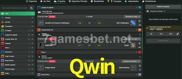A aposta Qwin oferece aos jogadores a experiência mais conveniente de apostas em eSports!